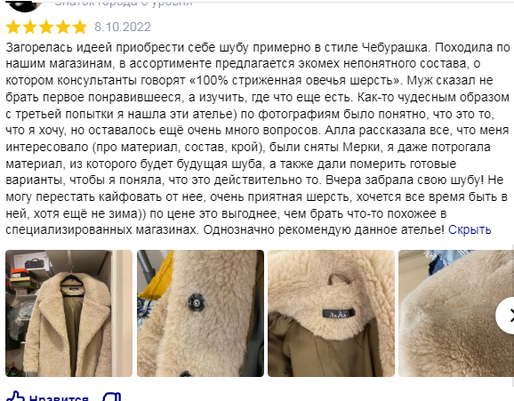 Как только шубка будет готова, мы сразу же отправим ее по вашему адресу.